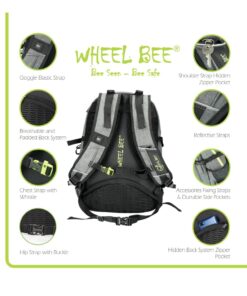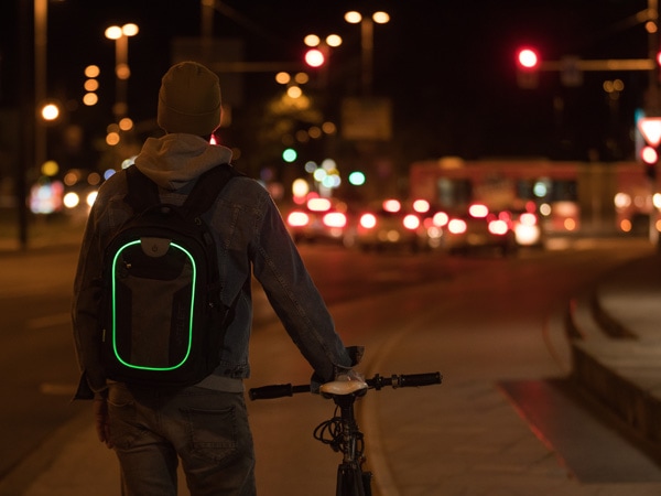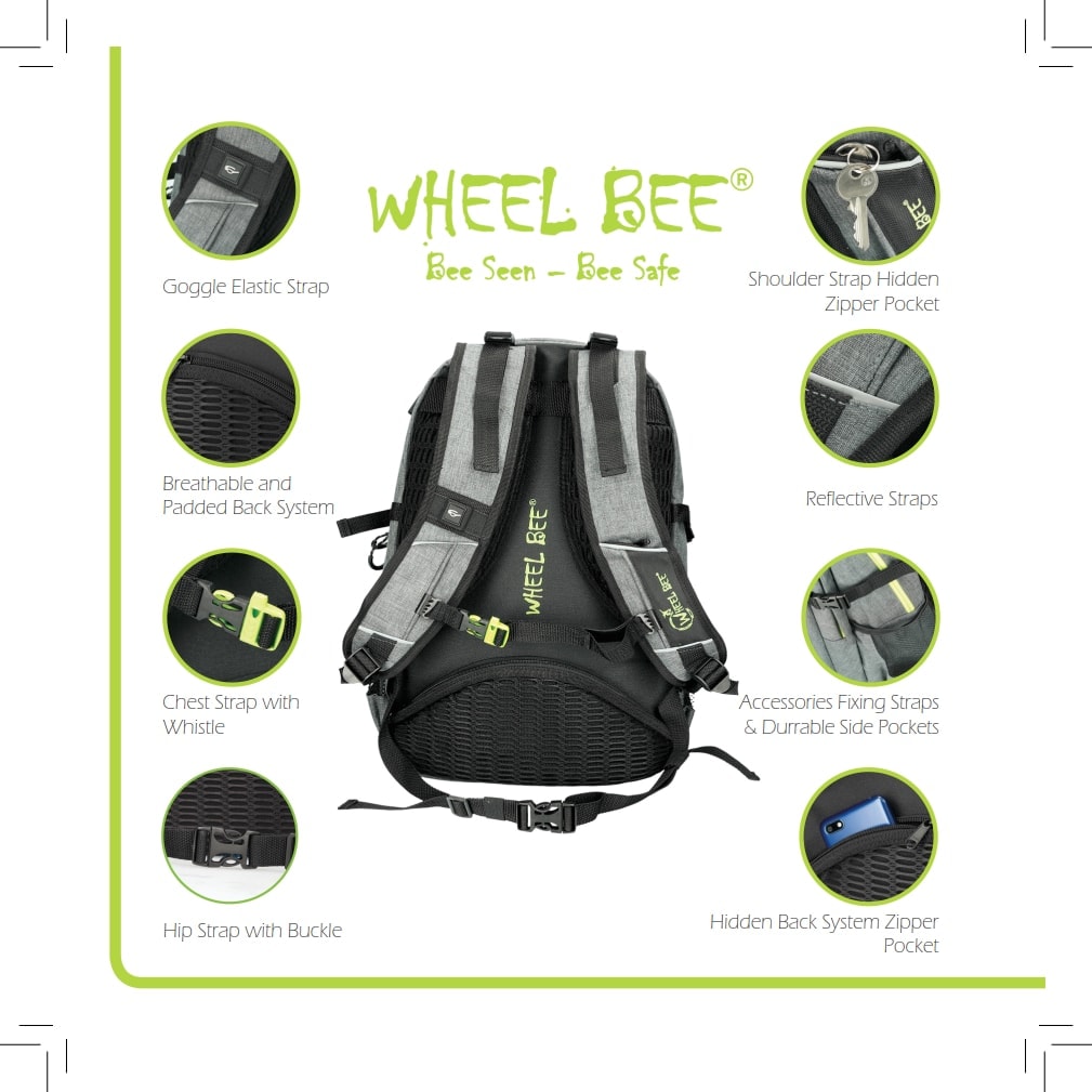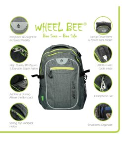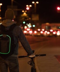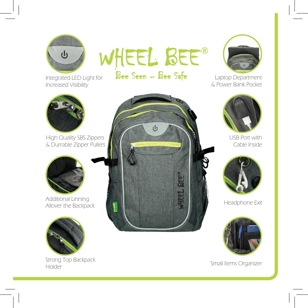 Features: INTEGRATED LED LIGHT for increased visibility and safety | USB PORT with cable | Headphone exit | Reflective stripes | Quality SBS zippers | 2 large departments, 1 smaller department, 2 hidden »theft-safe« pockets | Lap top department | 2 Powerbank pockets | Accessories organizer | Hard and padded back with air circulation system | Padded bottom | Padded shoulder straps | Height adjustable shoulder straps | Reinforced backpack holder | Waist straps | Chest straps with SAFETY WHISTLE | Clothes side straps | Side pockets | Easy zipper handler | Sunglasses holder