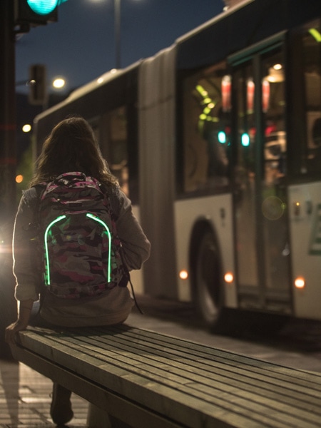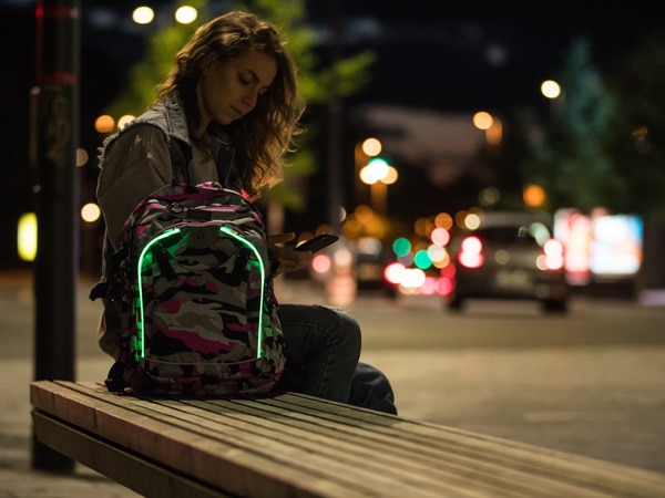 Features: INTEGRATED LED LIGHT for increased visibility and safety | USB PORT with cable | Headphone exit | Reflective stripes | Quality SBS zippers | 3 large departments, 1 smaller department, 3 hidden »theft-safe« pockets | Lap top department | 2 Powerbank pockets | Accessories organizer | Hard and padded back with air circulation system | Padded bottom | Padded shoulder straps | Height adjustable shoulder straps | Reinforced backpack holder | Waist straps | Chest straps with SAFETY WHISTLE | Skateboard/ clothes holder pocket | Clothes side straps | Side pockets | Easy zipper handler
