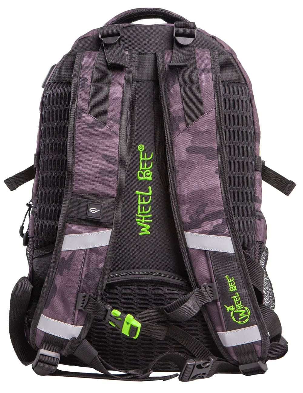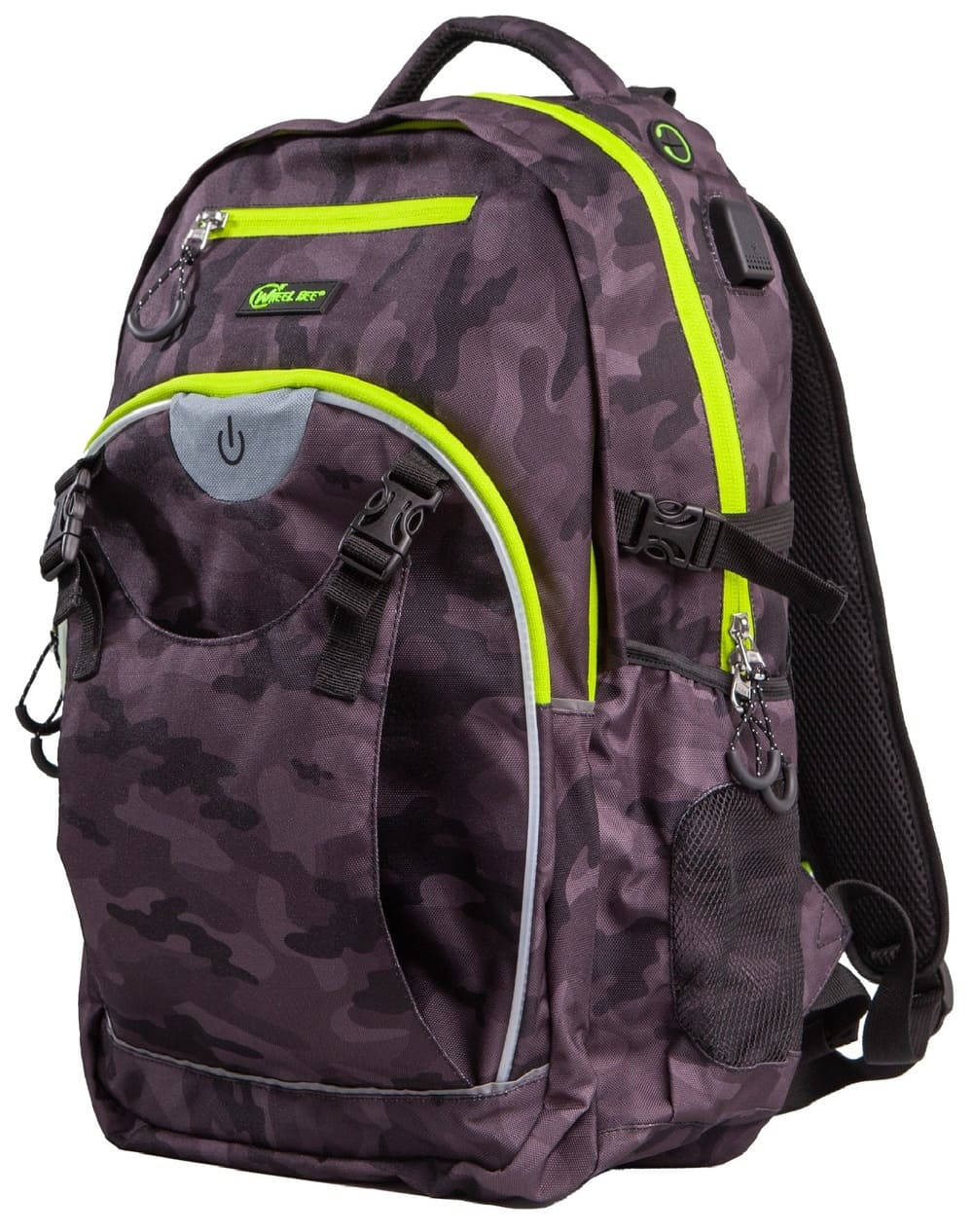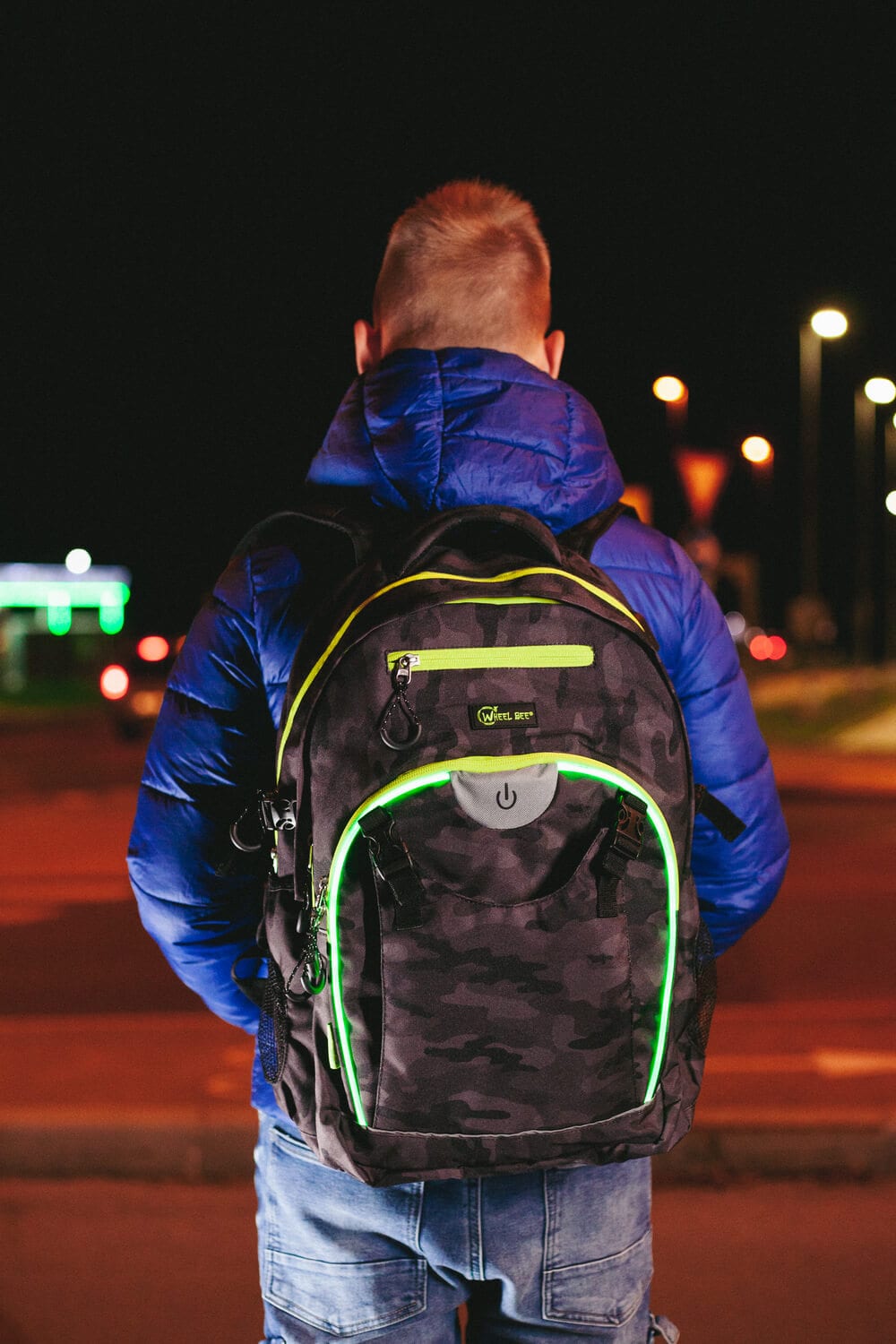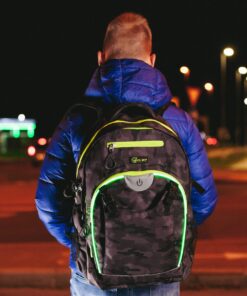 Features: INTEGRATED LED LIGHT for increased visibility and safety | USB PORT with cable | Headphone exit | Reflective stripes | Quality SBS zippers | 3 large departments, 1 smaller department, 3 hidden »theft-safe« pockets | Lap top department | 2 Powerbank pockets | Accessories organizer | Hard and padded back with air circulation system | Padded bottom | Padded shoulder straps | Height adjustable shoulder straps | Reinforced backpack holder | Waist straps | Chest straps with SAFETY WHISTLE | Skateboard/ clothes holder pocket | Clothes side straps | Side pockets | Easy zipper handler