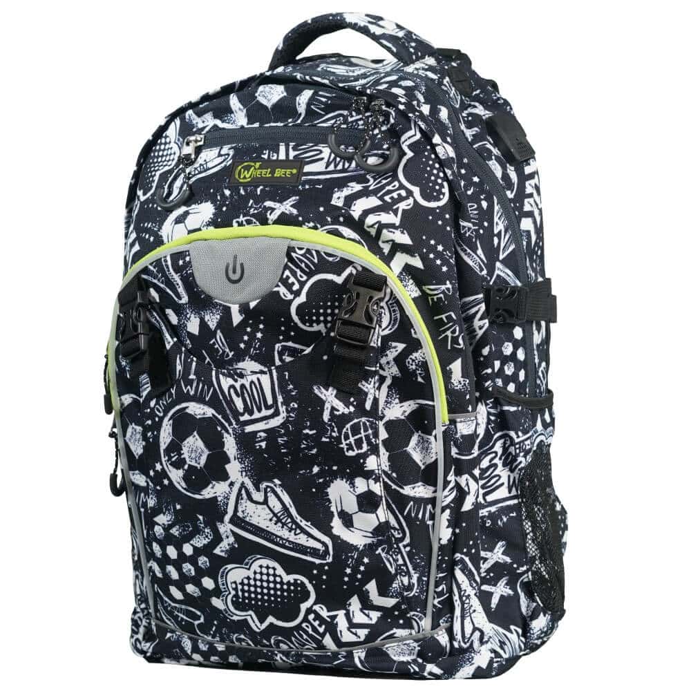 Features: INTEGRATED LED LIGHT for increased visibility and safety | USB PORT with cable | Headphone exit | Reflective stripes | Quality SBS zippers | 3 large departments, 1 smaller department, 3 hidden »theft-safe« pockets | Lap top department | 2 Powerbank pockets | Accessories organizer | Hard and padded back with air circulation system | Padded bottom | Padded shoulder straps | Height adjustable shoulder straps | Reinforced backpack holder | Waist straps | Chest straps with SAFETY WHISTLE | Skateboard/ clothes holder pocket | Clothes side straps | Side pockets | Easy zipper handler