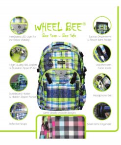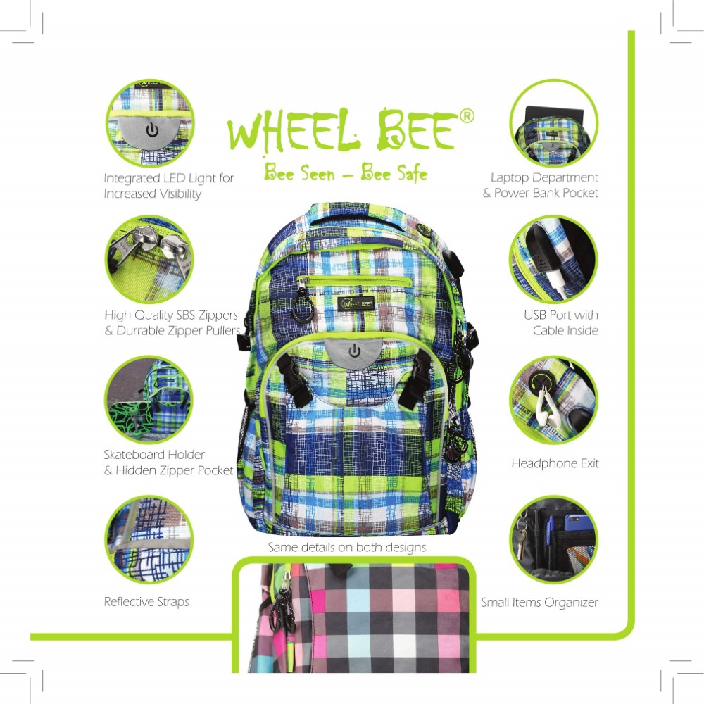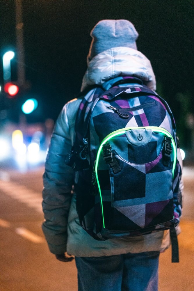 Features: INTEGRATED LED LIGHT for increased visibility and safety | USB PORT with cable | Headphone exit | Reflective stripes | Quality SBS zippers | 3 large departments, 1 smaller department, 3 hidden »theft-safe« pockets | Lap top department | 2 Powerbank pockets | Accessories organizer | Hard and padded back with air circulation system | Padded bottom | Padded shoulder straps | Height adjustable shoulder straps | Reinforced backpack holder | Waist straps | Chest straps with SAFETY WHISTLE | Skateboard/ clothes holder pocket | Clothes side straps | Side pockets | Easy zipper handler
