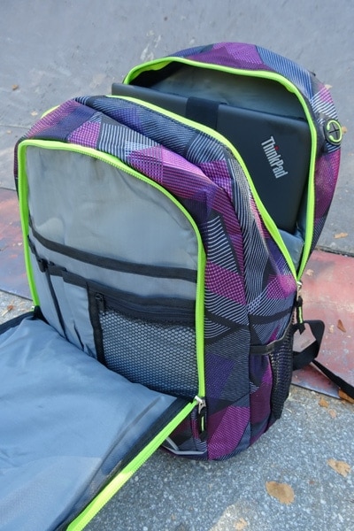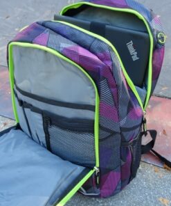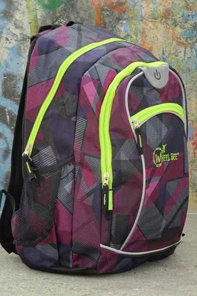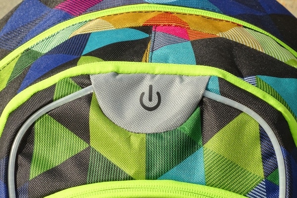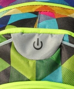 Features: INTEGRATED LED LIGHT for increased visibility and safety | Headphone exit | Reflective stripes | 2 large departments, 1 smaller department | Lap top department | Accessories organizer | Padded back with air circulation system | Padded shoulder straps | Waist straps | Chest straps with SAFETY WHISTLE | Side pockets | Easy zipper handler
