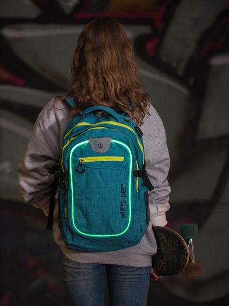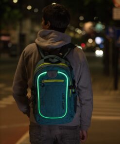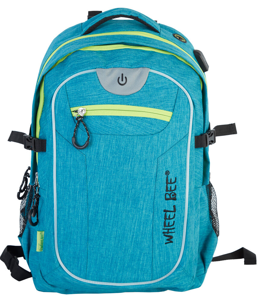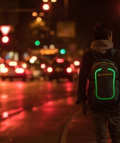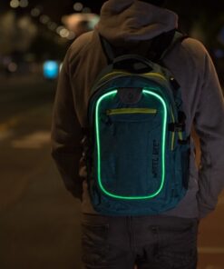 Features: INTEGRATED LED LIGHT for increased visibility and safety | USB PORT with cable | Headphone exit | Reflective stripes | Quality SBS zippers | 2 large departments, 1 smaller department, 2 hidden »theft-safe« pockets | Lap top department | 2 Powerbank pockets | Accessories organizer | Hard and padded back with air circulation system | Padded bottom | Padded shoulder straps | Height adjustable shoulder straps | Reinforced backpack holder | Waist straps | Chest straps with SAFETY WHISTLE | Clothes side straps | Side pockets | Easy zipper handler | Sunglasses holder