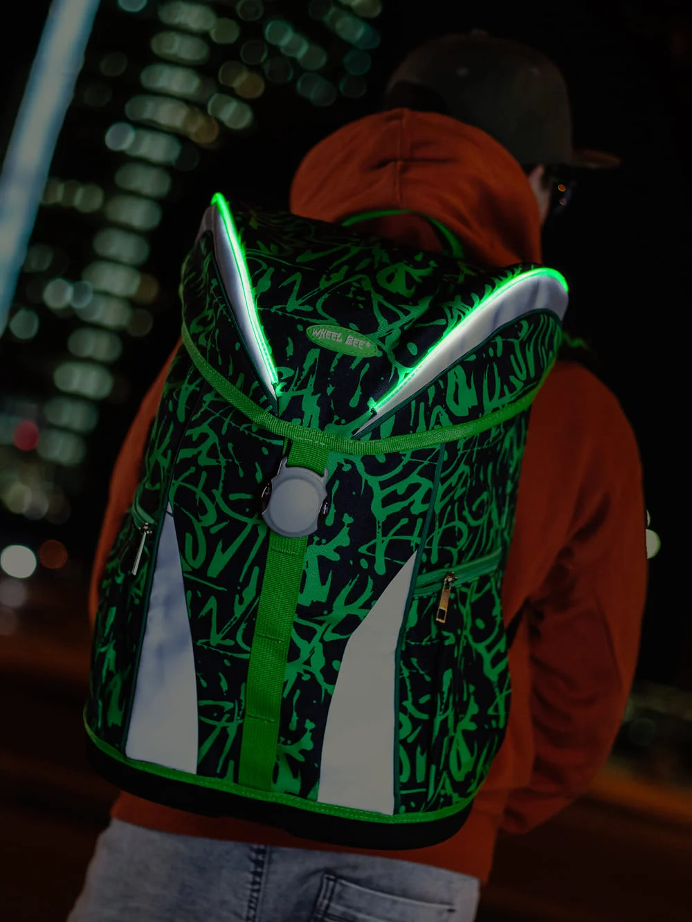 Inovativni WHEEL BEE® šolski nahrbtnik EXPLORER z vgrajeno LED svetilko, predstavlja vrhunsko kombinacijo udobja, funkcionalnosti in varnosti, zasnovano posebej za najmlajše uporabnike. Nahrbtnik WHEEL BEE® je oblikovan z mislijo na večjo vidnost in varnost otrok v prometu, ter na otroško anatomijo, zagotavljajoč optimalno podporo hrbtenici in ramenskemu delu.